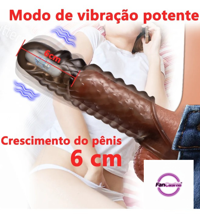 Capa Peniana Vibratória Reutilizável Realista Extensor 6cm Preto