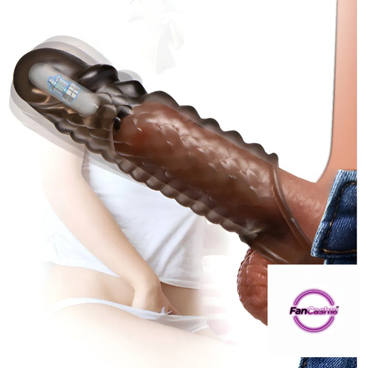 Capa Peniana Vibratória Reutilizável Realista Extensor 6cm Preto